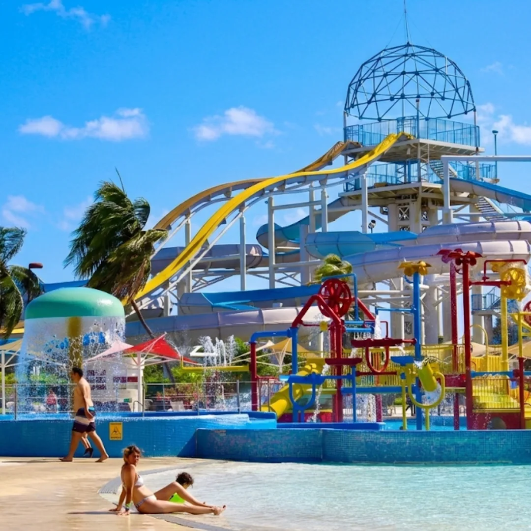 Pasa un día lleno de diversión en toboganes, albercas y río lento en Ventura Park Cancún con acceso al área Wet & Wild. Disfruta un parque acuático frente al mar Caribe con atracciones para todas las edades.